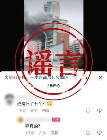 近期,为博取流量,一网民未经证实便在某平台一火警视频下评论称:“说是死了五个?”经核查,现场火警无人员伤亡。经调查,某网民对其捏造并散布谣言的行为供认不讳。